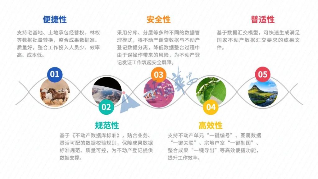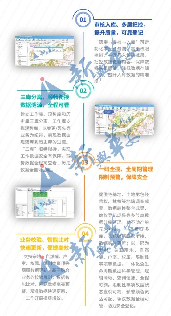 房地一體(ti)宅基(ji)地數據(ju)(ju)(ju)轉(zhuan)換與整(zheng)合(he)建庫、農村(cun)土地承(cheng)包(bao)經(jing)營(ying)權數據(ju)(ju)(ju)轉(zhuan)換與整(zheng)合(he)建庫、林權數據(ju)(ju)(ju)整(zheng)合(he)與清理歷史遺留問題等工作,為不(bu)動產全業(ye)務類型登記、全生命周期(qi)數據(ju)(ju)(ju)管理提供重要的數據(ju)(ju)(ju)支撐。