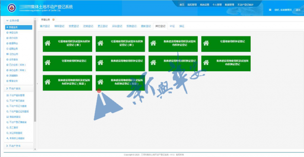 面向不動產全業務(wu)類型(xing)(xing)登記(ji),新(xin)興華安對業務(wu)專(zhuan)題進(jin)行拓展和升級(ji),在(zai)保持原有不動產登記(ji)專(zhuan)題的同時,按照國家最新(xin)的標(biao)準要求(qiu),新(xin)增并(bing)支持包括宅基地、農村土地承包經營權、林權、居(ju)住權等多(duo)種類型(xing)(xing)登記(ji)業務(wu)辦理流程。
