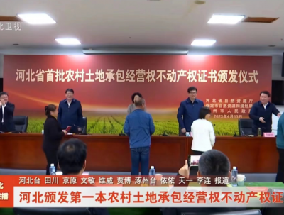 4月13日,河北省首本農村土地承包經營權不動產權證書頒發儀式在涿州市成功舉行。河北省自然資源廳自然資源確權登記局